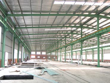 鋼立柱:346*174*6*9H鋼,屋面鋼梁300~500*200*6*8H鋼。檁條:200*70*20*2.0C型鋼。外墻1.2米以 下為土建磚墻,上為HV900型彩鋼瓦,屋面為HV840型彩鋼瓦內夾50mm保溫棉下襯不銹鋼絲網,屋面設兩條彩鋼排水檐溝。排入室外雨水系統,屋面下 水坡度為1/10。