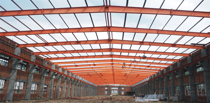 鋼結構屋蓋工程往往應用于大跨度建筑的屋面工程。其特點是建筑物墻體與框架為混凝土結構,只有屋蓋為鋼結構工 程。鋼結構屋蓋工程彌補了混凝土結構房屋不能進行大跨度的缺點。鋼屋蓋結構通常由屋面、檁條、屋架、托架和天窗架等構件組成。根據屋面材料和屋面結構布置 情況的不同,可分為無檁屋蓋結構體系和有檁屋蓋結構體系。