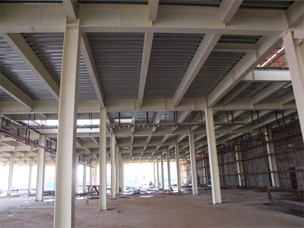 工程概況:本鋼結構平臺是根據上海重力機械制造有限公司原有大型建筑物內進行鋼結構平臺加層工程,建設主要求鋼平臺建好后每平米承重達達250kg/平方米,閣興公司依據其生產特點特設計本鋼平臺工程。另在鋼平臺左右兩安裝幅鋼樓梯,以及1米高的扶手欄桿。