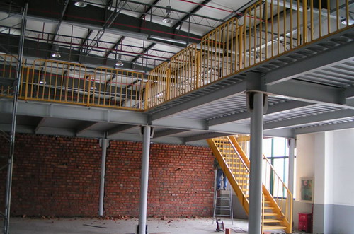 工程概況:本鋼結構平臺是在上海東方包裝材料有限公司要求下,進行原廠房隔層工程,閣興公司查看了原廠房高度,以及內部形式后,設計7字型鋼結構平臺隔層工程,另安裝一幅鋼樓梯,以及1米高的扶手欄桿。