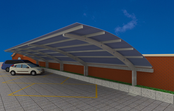 該異形鋼結構車棚適用于轎車,自行車,助動車等放置。