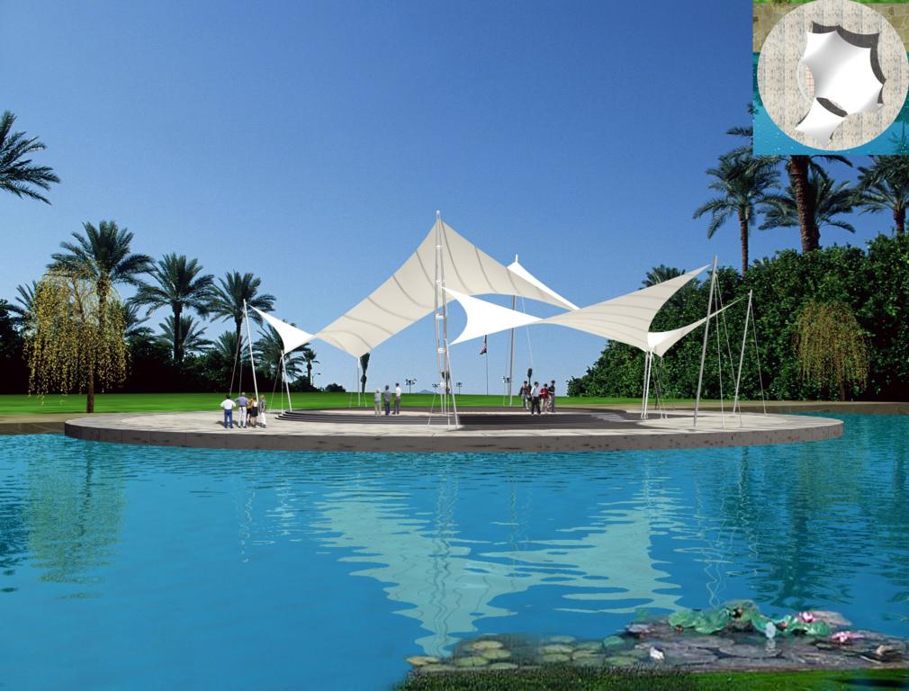 膜結構曾被用于覆蓋一些室內或室外的演出設施。大部分是由鋼框架支承的張拉膜結構。建成的實例有:長沙世界之 窗劇場(3500m2)、深圳歡樂谷中心表演場(5800m2)、廣州海洋世界海豚館(2840m2)和天津泰豐風雨劇場(1000m2)等。世界之窗劇 場建成于1998年,是早期采用PVC覆面膜材的工程之一。