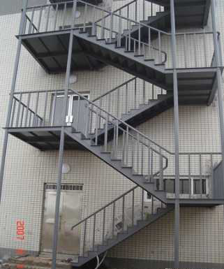 鋼結構消防樓梯一般在戶外,層高不限,有時還要根據層高加做獨立基礎,z字形的鋼板樓梯,以連續的z形鋼板焊接在一起,折的部分與墻面固定,樓梯踏板作為懸臂梁從鋼柱挑出,沿螺旋上升排列。