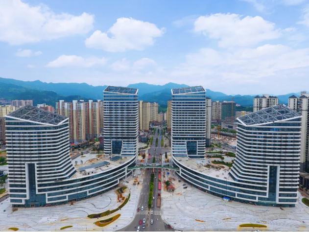 “‘城市之門’的設(shè)計(jì)靈感來源于蝴蝶,從高處俯瞰整個(gè)項(xiàng)目,就像一只振翅飛翔的蝴蝶,連接大樓的天橋就像蝴蝶的身軀。”中鐵四局凱里未來城項(xiàng)目書記程恩來解說道。